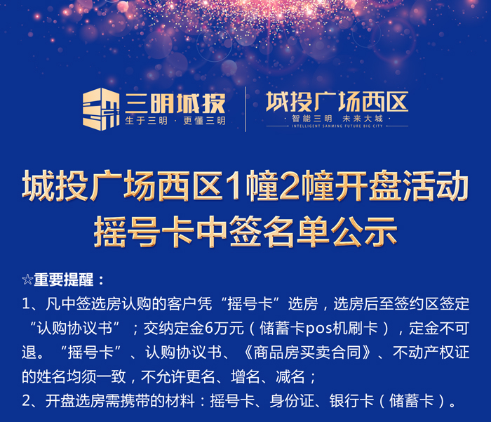 城投廣場西區(qū)1幢2幢搖號卡辦理名單公示
