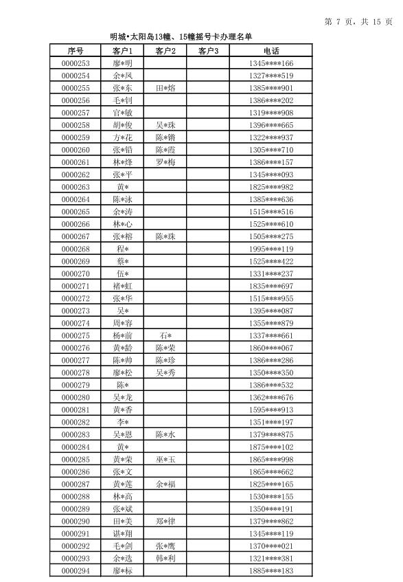 明城·太陽島13幢15幢開盤“搖號卡辦理名單”公示