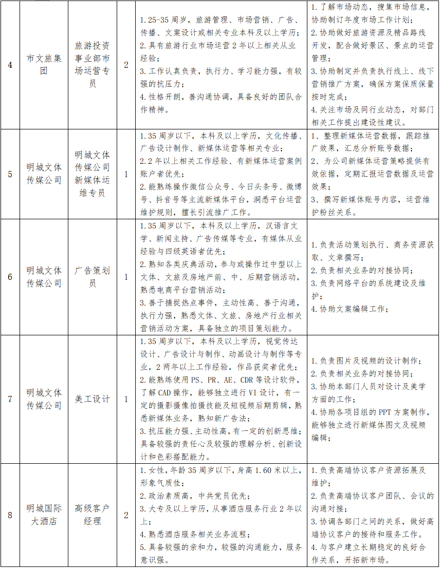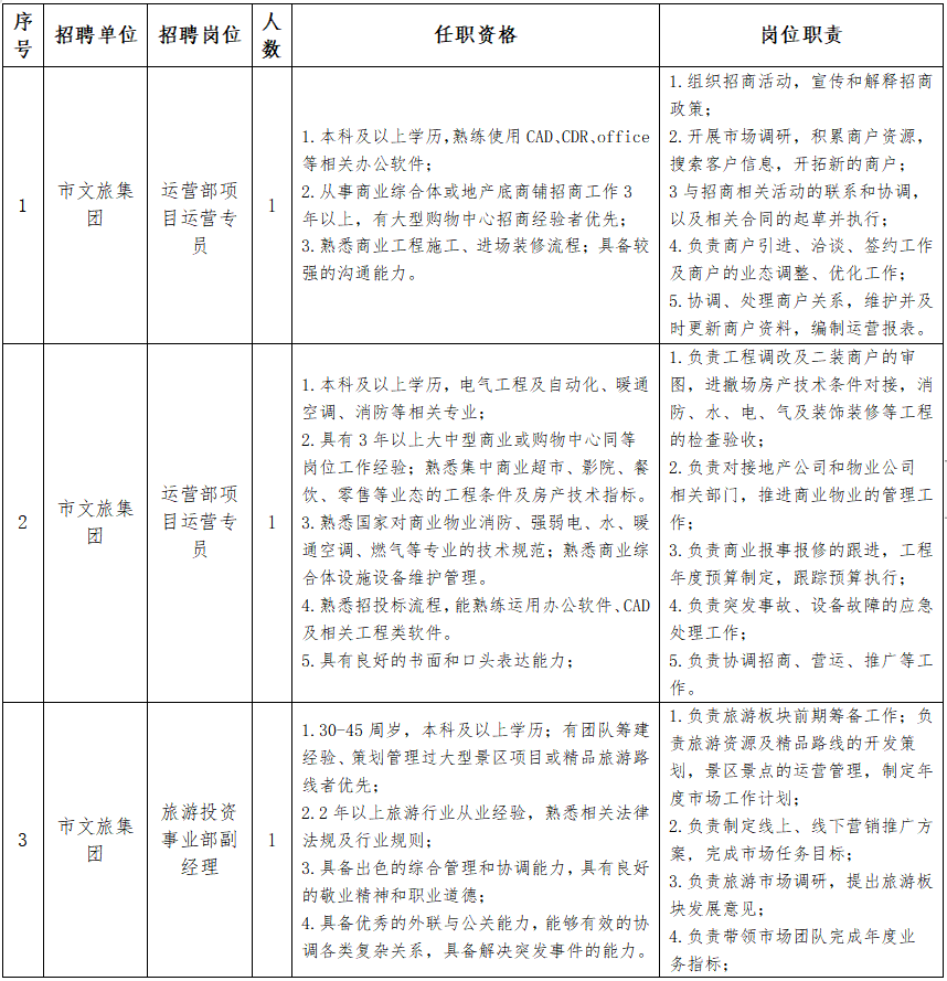 因工作需要,三明城發(fā)集團(tuán)權(quán)屬企業(yè)面向社會(huì)公開(kāi)招聘,具體如下: