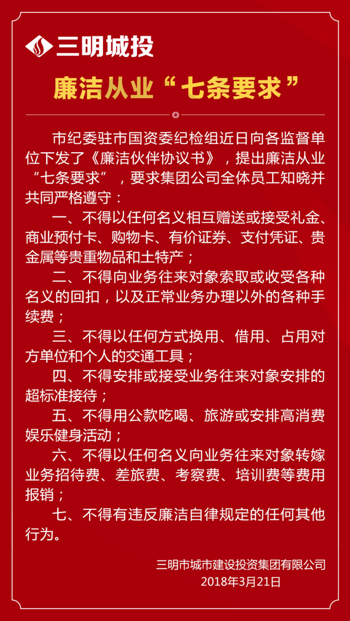 廉潔從業(yè)“七條要求”