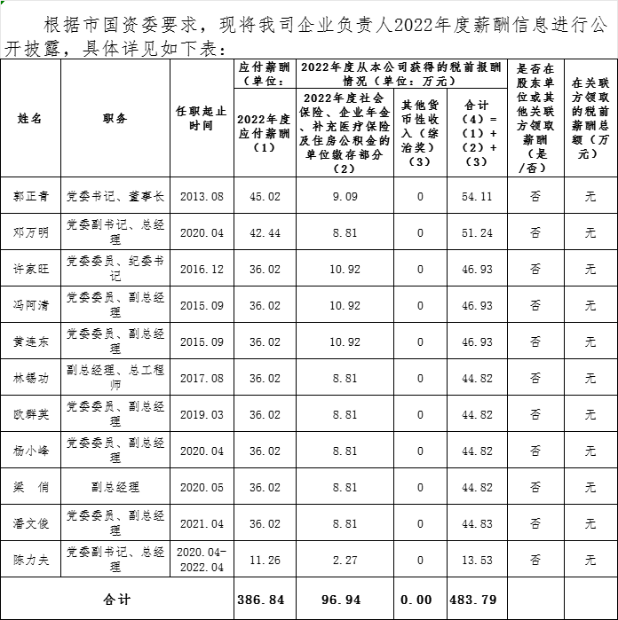 2022年度市城發(fā)集團(tuán)企業(yè)負(fù)責(zé)人薪酬披露表
